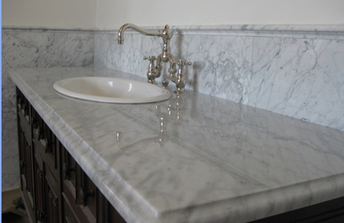 Lavabo del cuarto de baño Vanity Blanco Carrara Mármol Top Jocelyn apenada Gris apenada