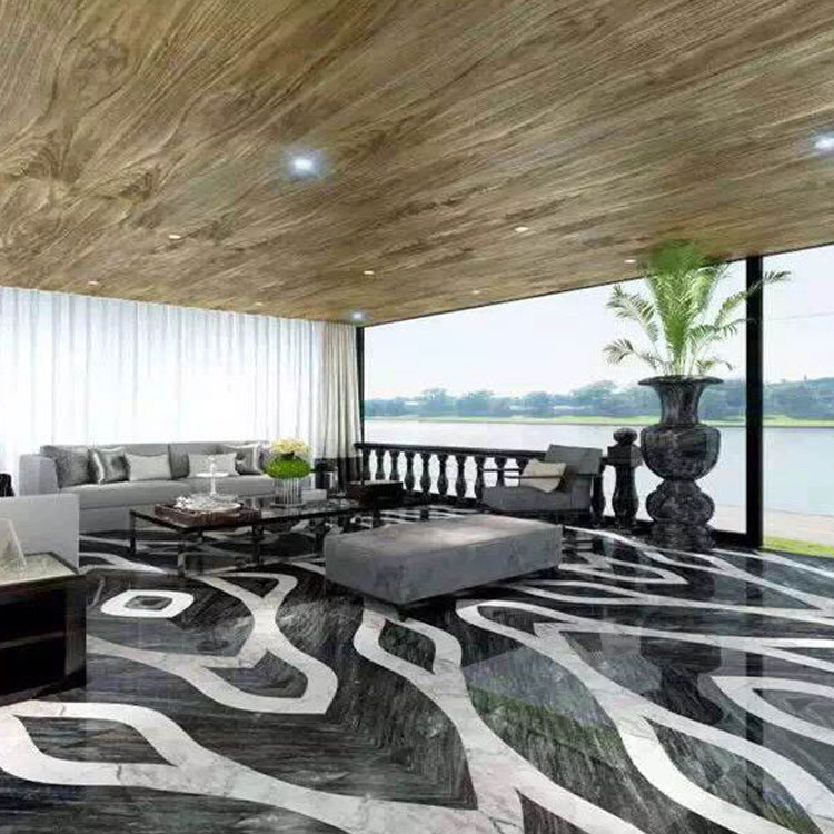 Mármol gris Cartier, losa grande pulida con vena blanca para decoración de pisos y paredes
